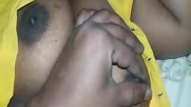 Indian wife boobs press and blowjob