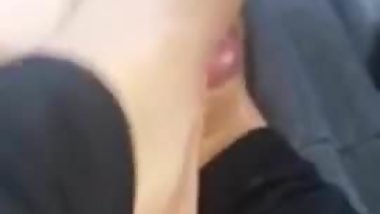 Public moving car pussy play by horny exhibitionist teen