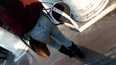 Desi girl in leggings street walking