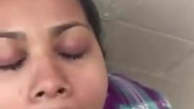 Desi bhabhi rubbing cock on her big nipples