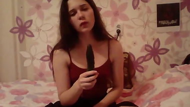 Horny Indian girl fucking herself with a cucumber anal double penetration