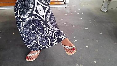Desi Babe shows her feet in restaurant