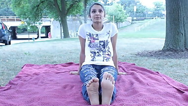 Indian slut Sahara Knite getting her feet worshipped