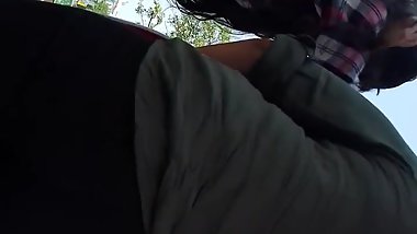 Indian slag on her knees in park sucking cock