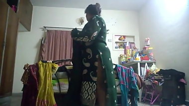 Hot and Smart Northindian Aunty filmed herself while dress Changing