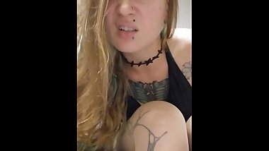 "Dumb bitch with body writing taking cock slap, spitting and cum"