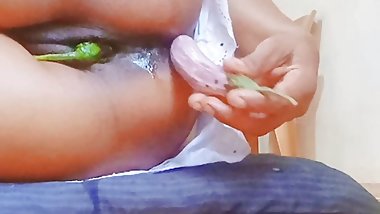 "Sri Lankan lady sex with vegetable. Brinjal girl fucking girl suing 2 Brinjal to her pussy and back side. Homemade sex home sex"