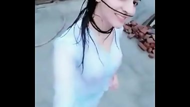 Cute shy indian school girl showing big boobs to friend