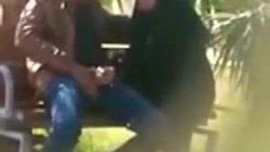 indian muslim girl doing handjob to her Boyfriend in a park