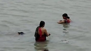 cute girls bathing nice boobs outdoor caught by nehibour