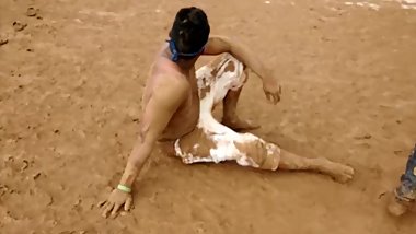 Indian Lesbian girls playing in waterpark