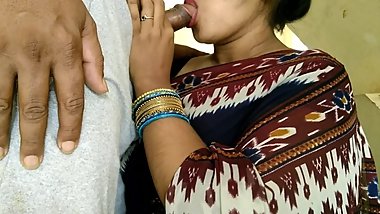 Sexy indian wife in saree gives sloppy gagging choking blowjob throatpie
