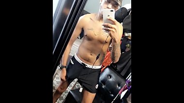 Hot sexy indian guy jacking his cock and wearing hollister shorts