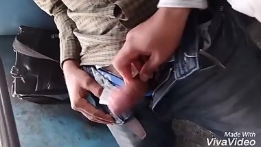 Indian boy in a female thong cumming on moving train toilet