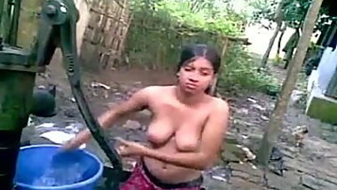 Bangla desi shameless village cousin-Nupur bathing outdoor